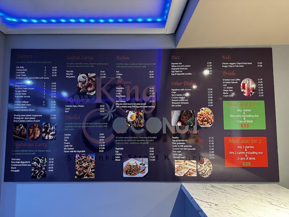 Located at 55 Tonge Moor Rd, Bolton, King Coconut Sri Lankan Street Kitchen offers a delightful dive into the vibrant street food culture of Sri Lanka. This eatery is all about bringing the true essence of Sri Lankan cuisine to the UK, providing locals and visitors alike with a taste of home-style cooking that hits the spot. The friendly staff, led by Chef Sajith, ensure that every guest feels welcomed and satisfied, whether stopping in for a quick takeaway or enjoying a meal in-house. There’s a definite local charm to the place, as the restaurant regularly attracts a loyal crowd eager to indulge in authentic flavor combinations. The atmosphere is relaxed, perfect for families and food lovers; it’s a place that feels just right to unwind after a long day or to celebrate special moments. With convenient free street parking available, visiting is seamless, adding to the overall experience. From casual diners to families looking for kid-friendly options, the restaurant caters to everyone with its diverse menu.